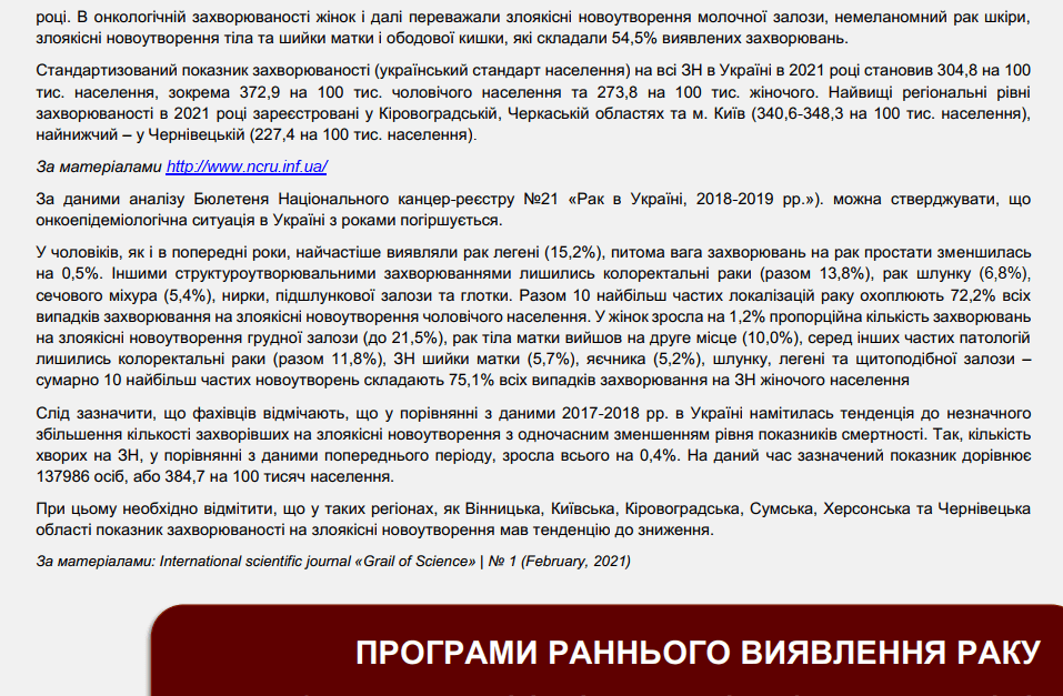 Чому онкологічні захворювання й досі залишаються небезпечними, скільки хворих на рак в Україні, про профілактику та зниження ризику захворювання на цей недуг, можна дізнатися у Інформаційному бюлетені «Онкологія в Україні: стан проблеми, шляхи розвитку та профілактики».